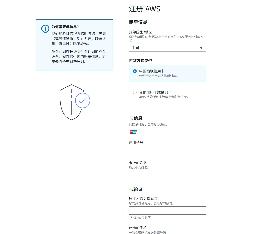 建议全部都用真实国内信息,才能提升注册账户成功率,AWS这块管控很严格。输入真实未注册过亚马逊云的邮箱,输入AWS用户名,进入图形验证。