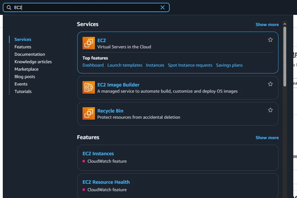 这就是我的强项了,搜索EC2,选择EC2。