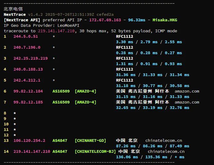 移动走香港回国,联通走日本回国,电信走美国回国。