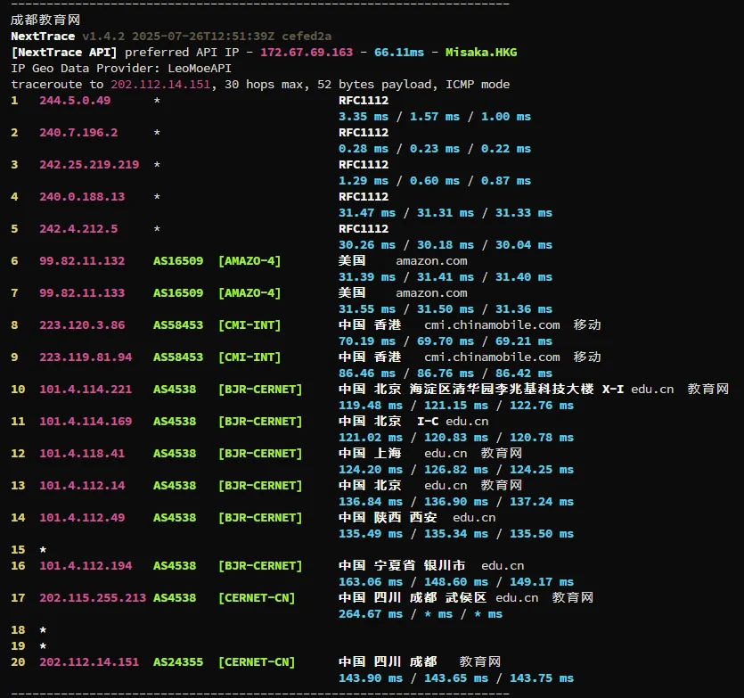 来看线路回程延迟情况