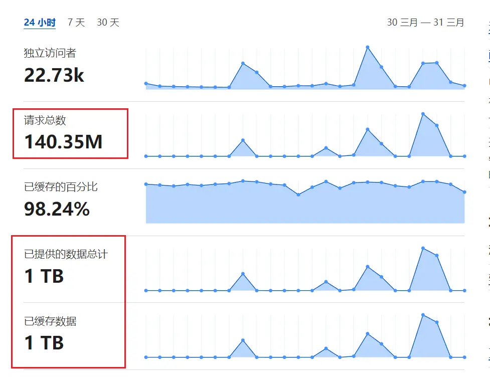 今天压力测试的成果 一天打了1T流量