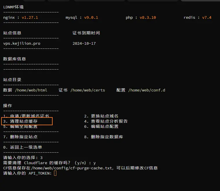 LDNMP菜单中选择31