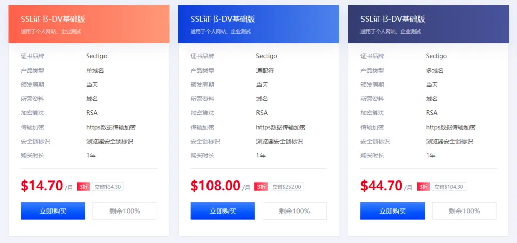 ●SSL证书: 提供加密数据传输、提升网站信任度、提高搜索引擎排名等优势,价格低至3折!