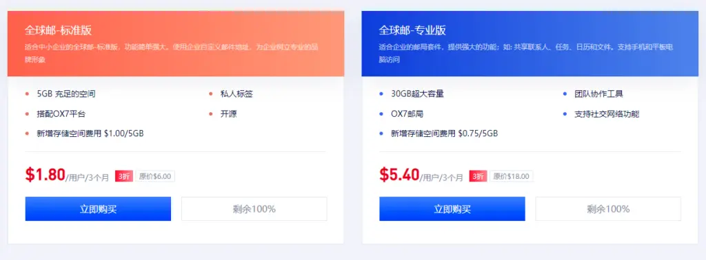 ●企业邮箱:提供专业稳定、安全便捷管理、大容量存储等优势,适合各种企业需求,价格低至3折!