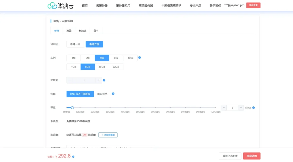 无限流量,带宽上下行5mbps,对于海外电商业务够用,如果高带宽需求可以选择他们家大带宽云服务器产品。
