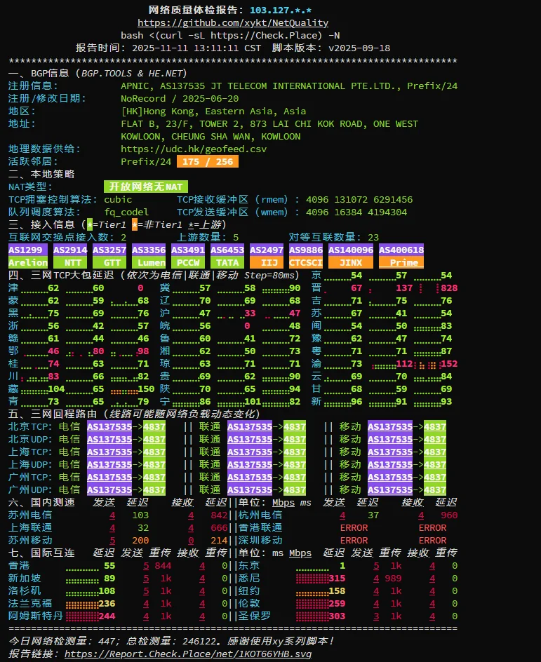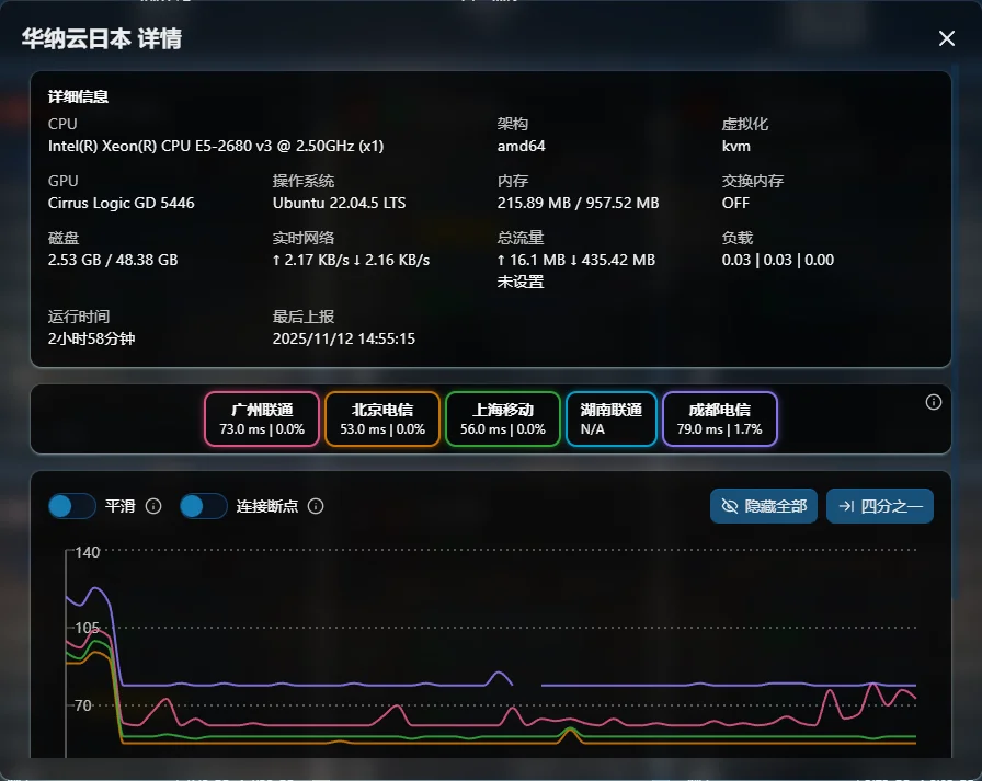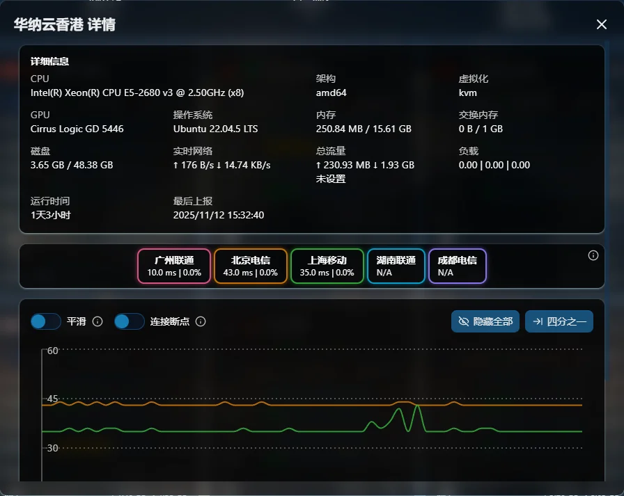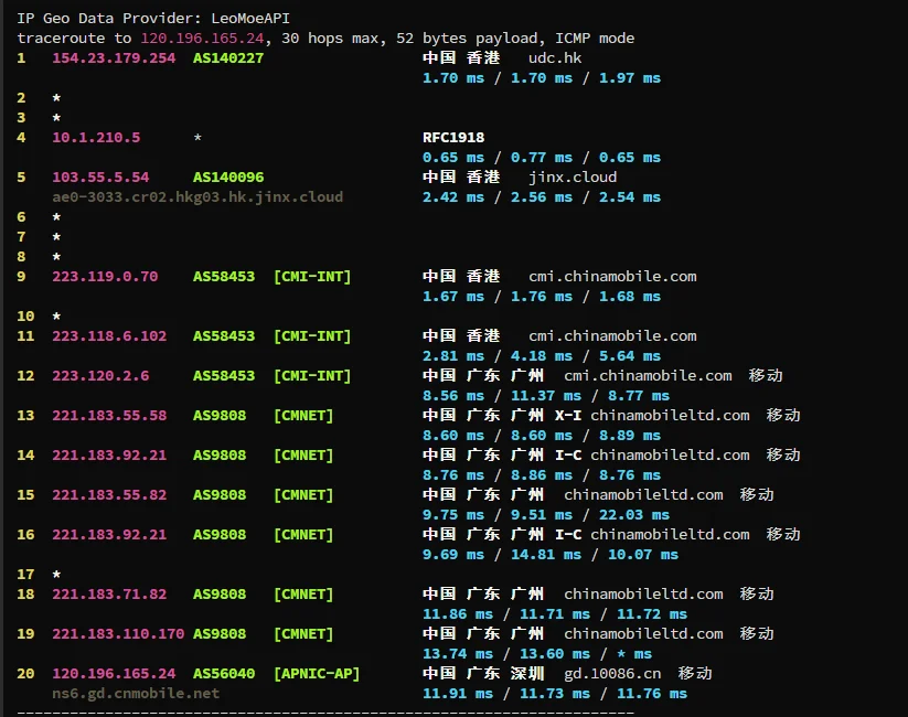 延迟没得说,电信cn2,联通4837,移动CMI,都走各自优化线路,广州靠近香港都能控制在10毫秒左右,北京也就40毫秒。