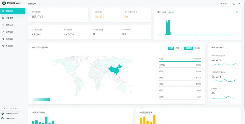 我们经常用NPM可视化面板反代服务到域名上,我发现一个更加强大的面板,雷池是个web防火墙面板,基于nginx,反向代理只是基础,重点是还能防御站点,拦截网络恶意攻击。你可以理解为反代加高防的存在,