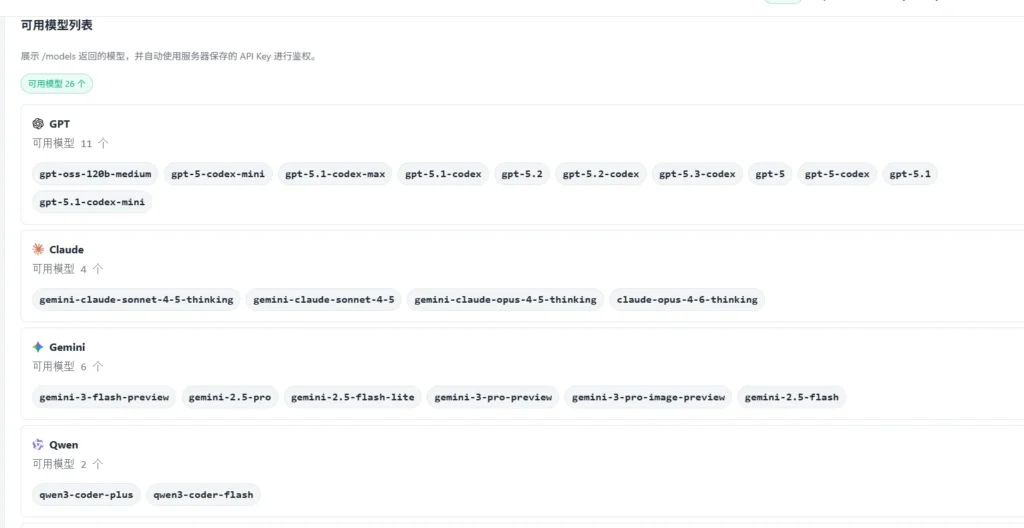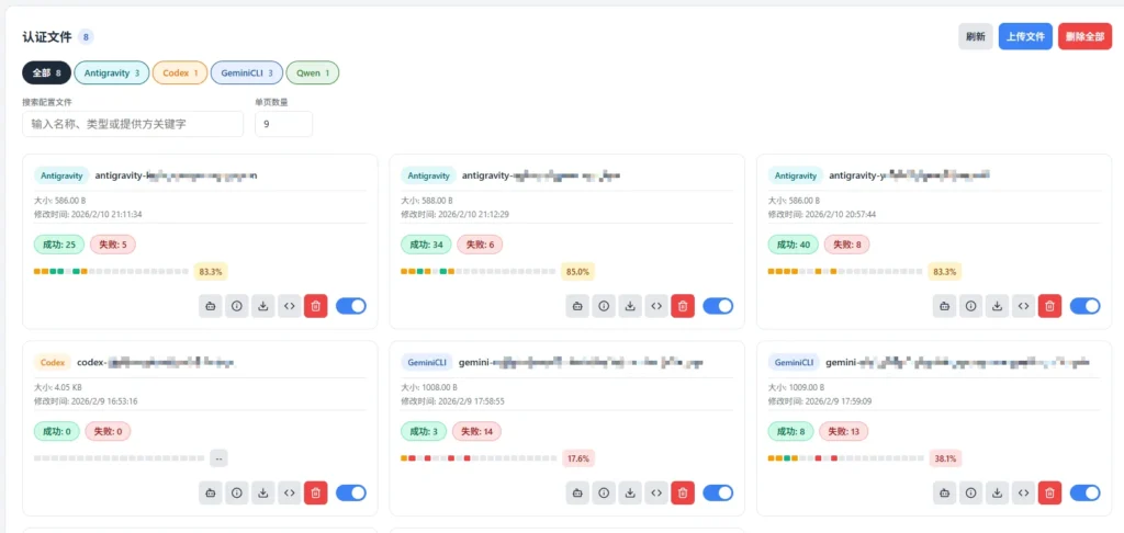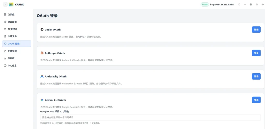 CLIProxyAPI 管理面板中,添加Antigravity(反重力) Gemini、Kimi,Qwen 或者 ChatGPT的认证文件,用OAuth登录添加。