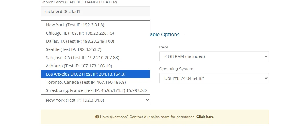 选择地区,我们这边选择洛杉矶的DC2机房,有小伙伴说76打头的IP更好,就看大家能不能随机到了。