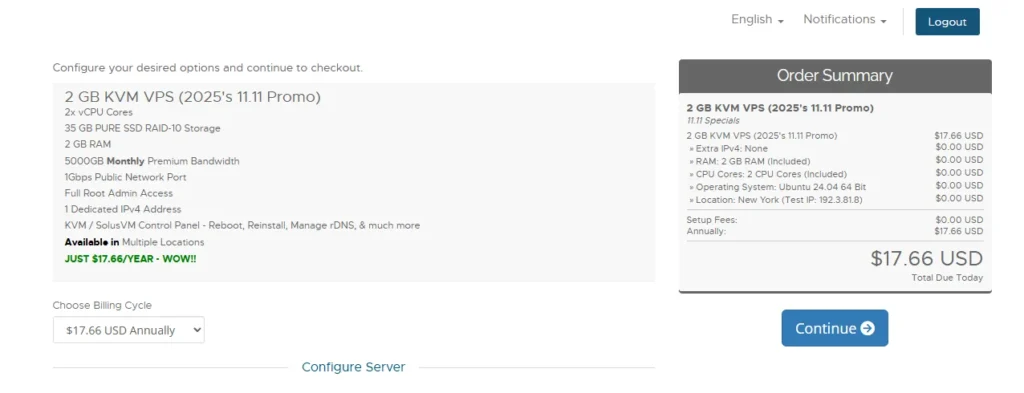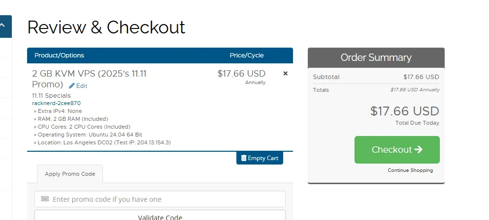 RN RackNerd 11月特惠活动 洛杉矶双倍流量 上手体验