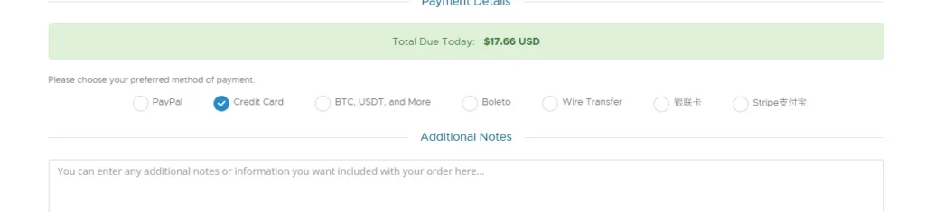 这边支持多种支付方式,PayPal,支付宝,USDT,信用卡,银联卡全都有,我记得以前还没这么多支付方式,按需选择。