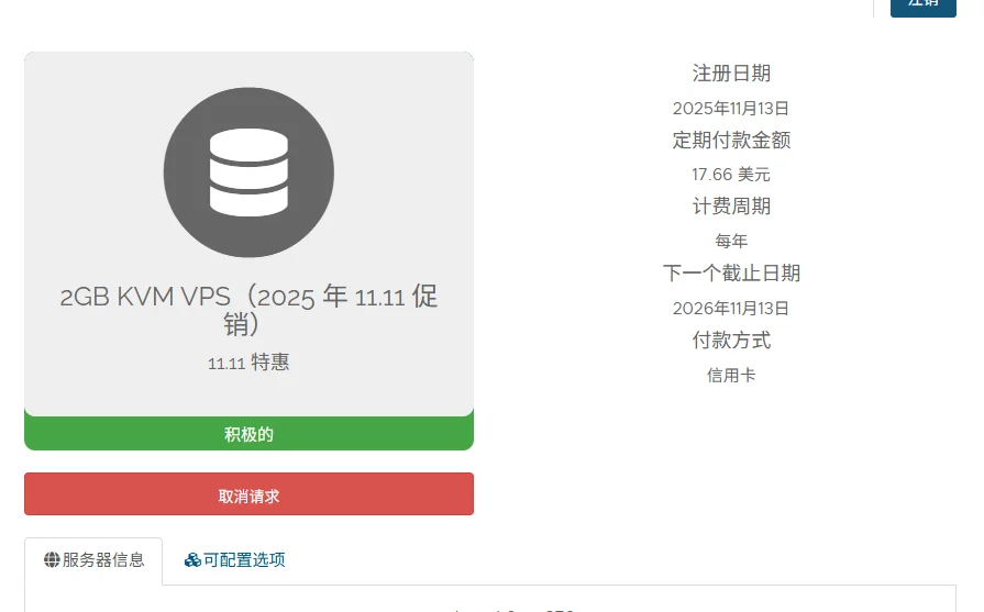 很久很久没和大家聊RN了,这家可是我刚接触付费小鸡的最先接触的一个厂商,已经有3个年头了,它家一直以低价大流量的超级性价比的机器,数据中心大多分布在美国,今天我买了一台11月新出的洛杉矶DC2的2H2G,5T流量每月的机器,价格是17刀,我用的虚拟信用卡购买的。就来看看这台机器到底怎么样吧。为11月底的黑色星期五提前打个样儿!