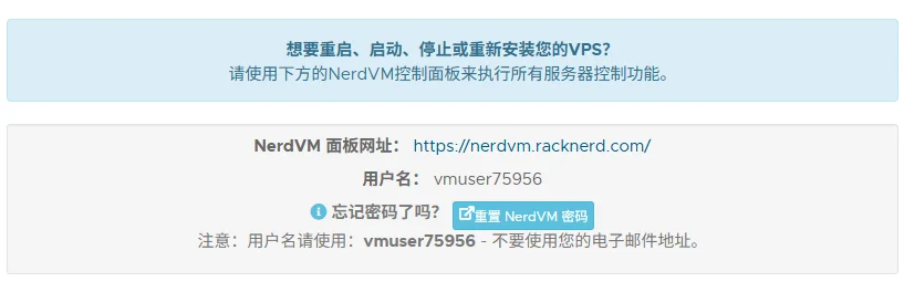 RN其实有一些不一样的,他有一个专门管理服务器的面板,你需要通过邮件获取面板的用户名和密码。进入面板,对服务器进行管理操作。