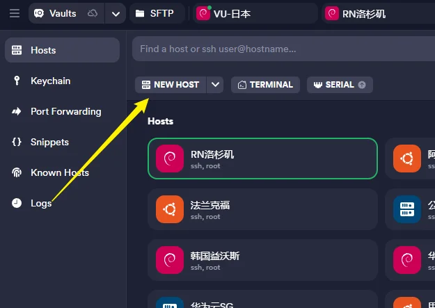 使用SSH连接工具连接服务器,SSH工具推荐Termius或者tabby