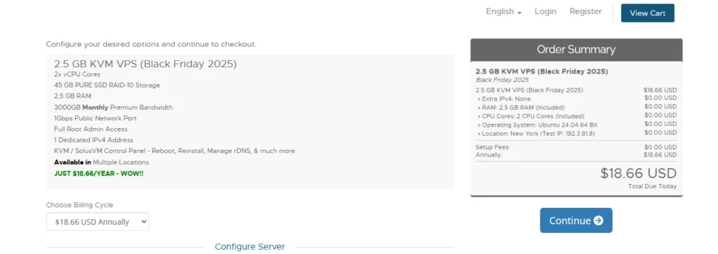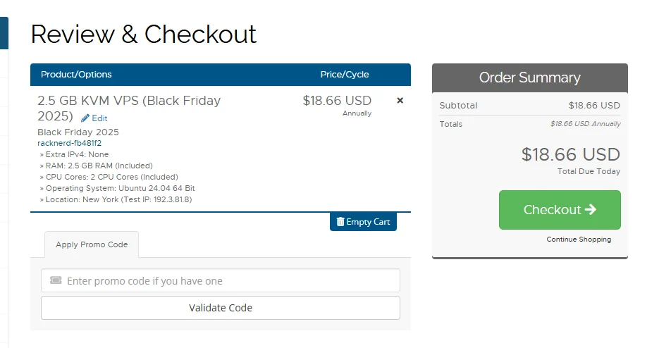 很久很久没和大家聊RN了,这家可是我刚接触付费小鸡的最先接触的一个厂商,已经有3个年头了,它家一直以低价大流量的超级性价比的机器,数据中心大多分布在美国,今天我买了一台11月新出的洛杉矶DC2的2H2.5G,3T流量每月的机器,价格是18刀,我用的虚拟信用卡购买的。就来看看这台机器到底怎么样吧。为11月底的黑色星期五提前打个样儿!