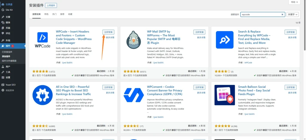 wordpress安装WPcode插件可以快速添加头部代码